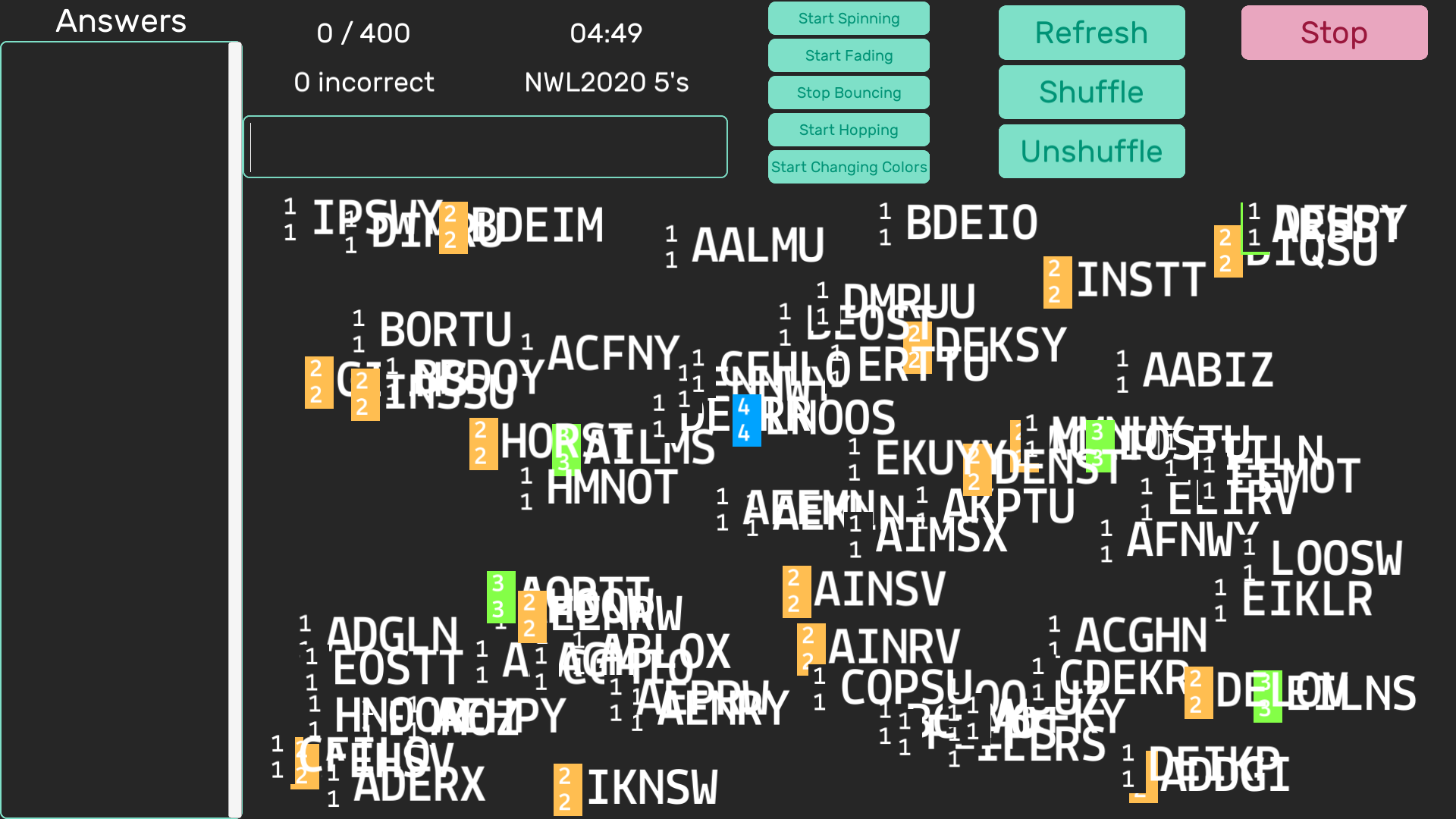 Fire up Twitch Mode to have your chat solve anagrams collaboratively, or go Solo Mode to solve anagrams on your own against the clock.